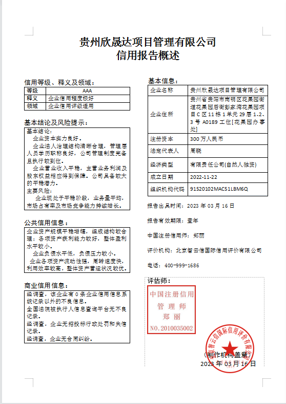 信用評價機(jī)構(gòu):北京智云信國際信用評價有限公司