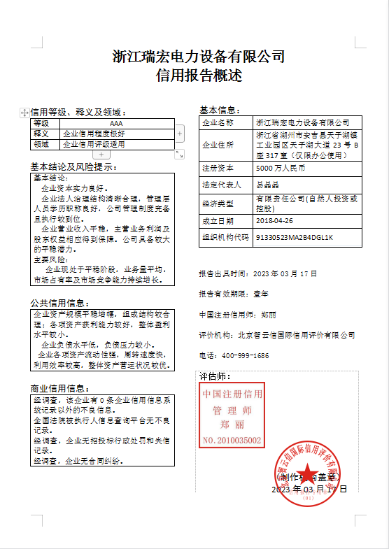浙江瑞宏電力設(shè)備有限公司
